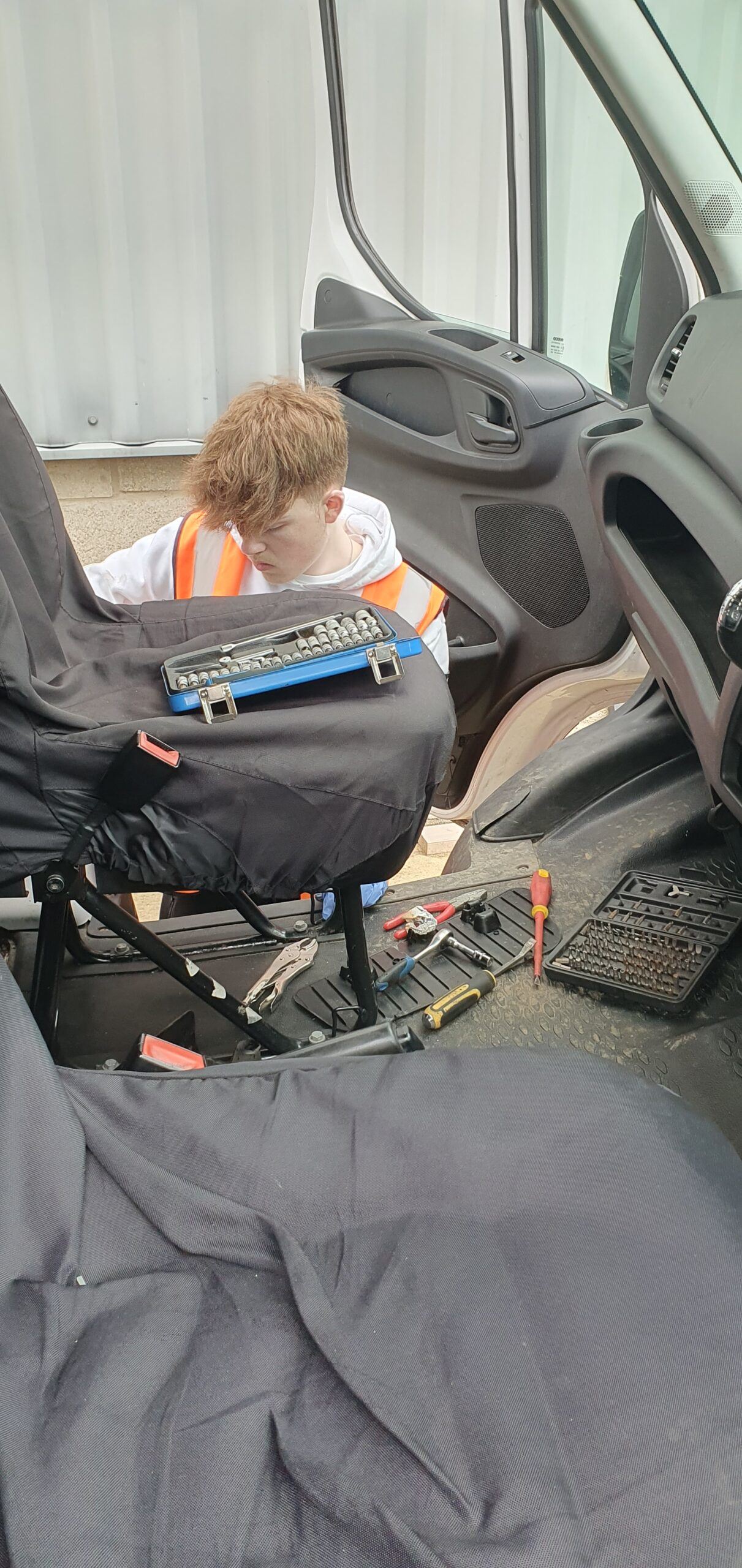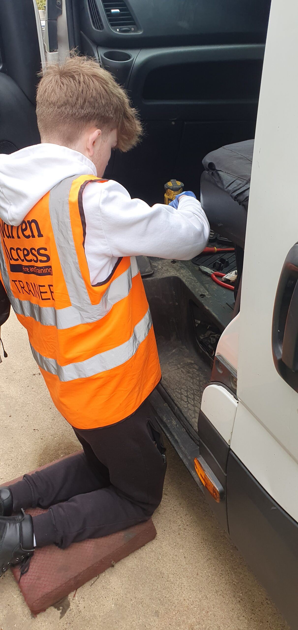 While he was only with us for a couple of days of work experience, we certainly kept him busy, and he got a trip up on one of our 21m truck mounted platforms. During his time, he helped out in the yard, completing odd jobs and assisting with changing one of the batteries in our vans – thank you, Ellis.